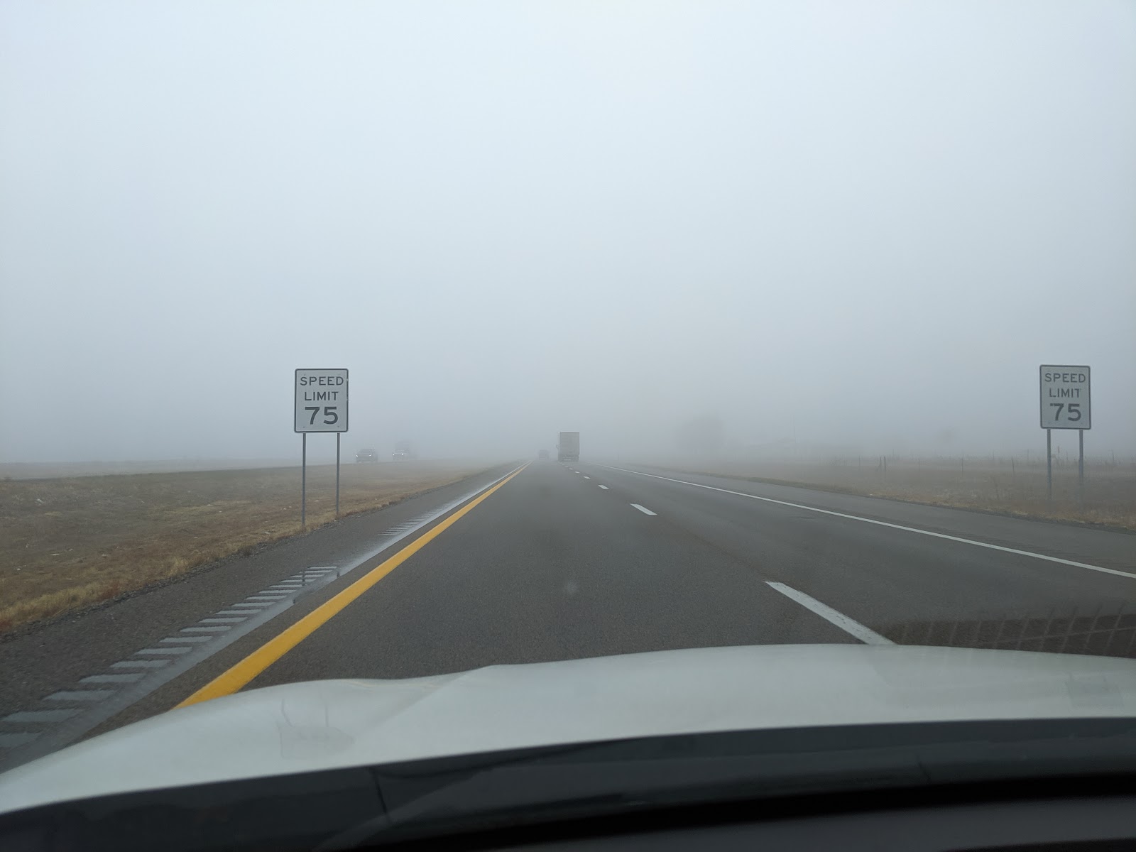 Driving I-45 South. Still rain and fog, but that white stuff from the skies, snow of something, ya know, is gone. The temperature is up to up to 72° as per Mr. Daniel Gabriel Fahrenheit, a German physicist and inventor (22° per Mr. Anders Celsius, Swedish astronomer and physicist). This is very California! I like that so much better than the white stuff. But the humidity, oh no … But no complains. The reality is what it is. Or rather what it seems to be. It all comes down to the experiencer, AKA you.