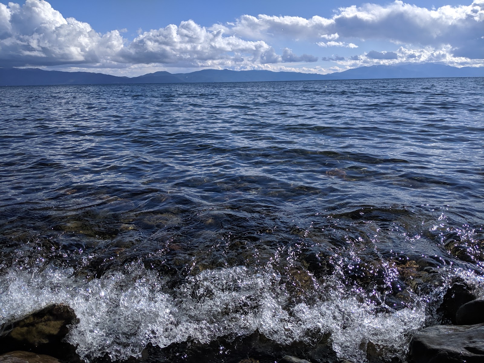 This beautiful mountain lake with fresh blue water is trying hard to counterbalance the human excrement of Nevada casinos. Look and feel for yourself where would you rather be. Tahoe is on the very edge of Nevada, half of shores in California. But again — nature knows no state boundaries. Clouds, mountains and water care less about human activities around. They have been here much longer, and they will be.