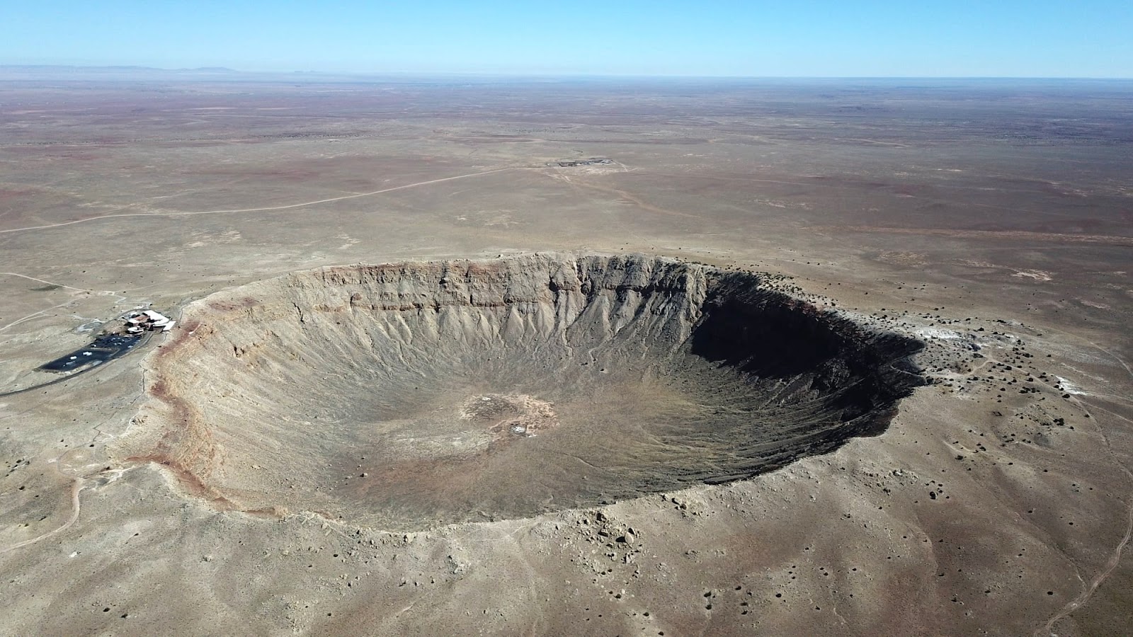 I decided to have another look at this taking off from the parking lot and soaring to 500 meters up in the air (sorry FAA, but I checked for the aircraft in the area more than twice). The crater is huge! Compared to its size, everything created by humans — cars, office and even the Flag (sorry, Mr. President) — look rather small and insignificant. We often grossly overestimate all the things we make.