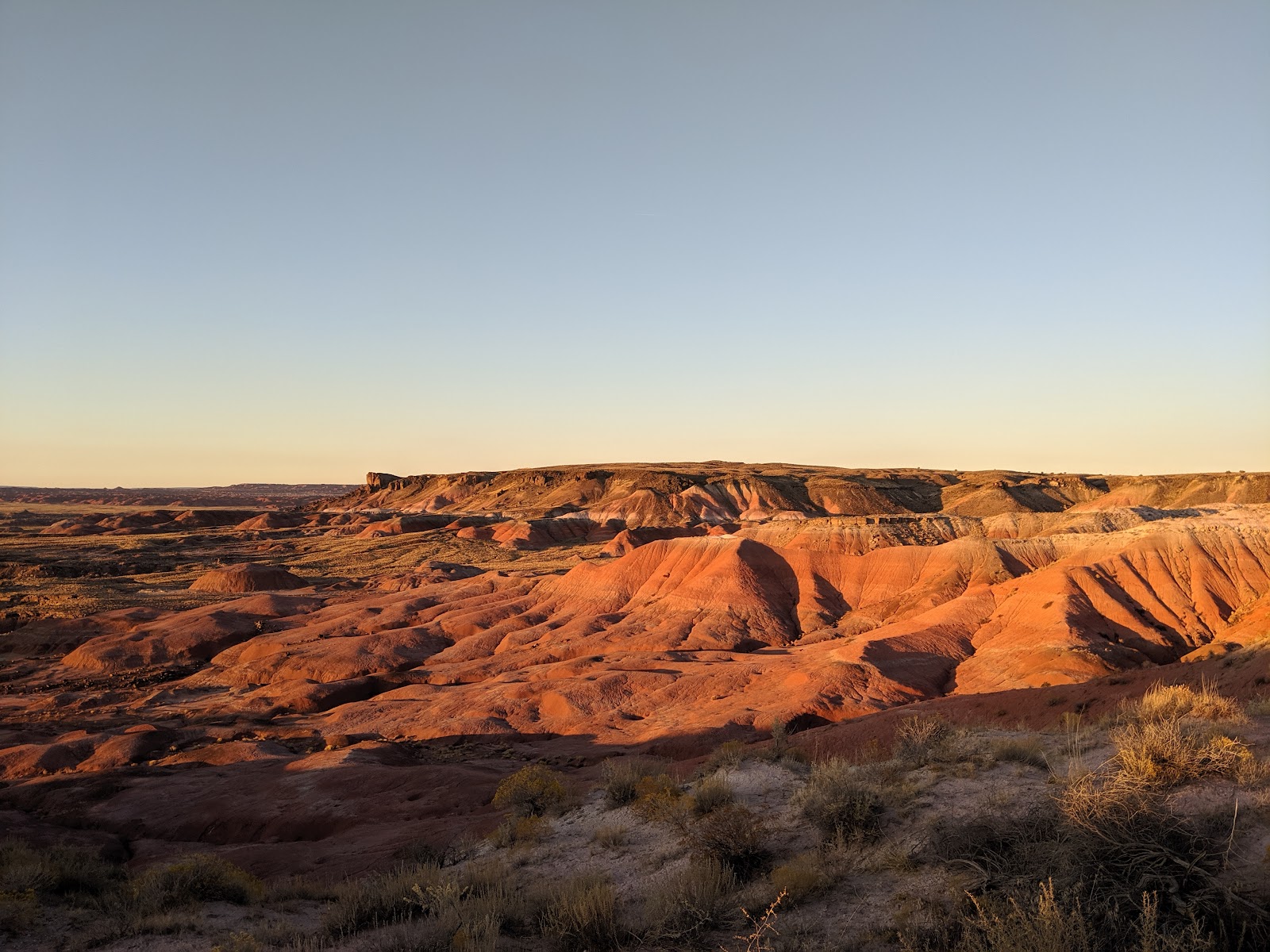 Interstate 40 is not as dull as thought it is. I drove here once before, but it was dark and I didn’t feel like looking around. Two more hours East and another Nat’l Landmark. This time the sign says “Petrified Forest”. Let’s check it out! The sun will be up for another couple of hours. The next stop is undefined and hotel reservation unmade. Exit 311, turn right, then left, then (pay $20 at the entrance and) go for 28 miles. Enjoy the view …