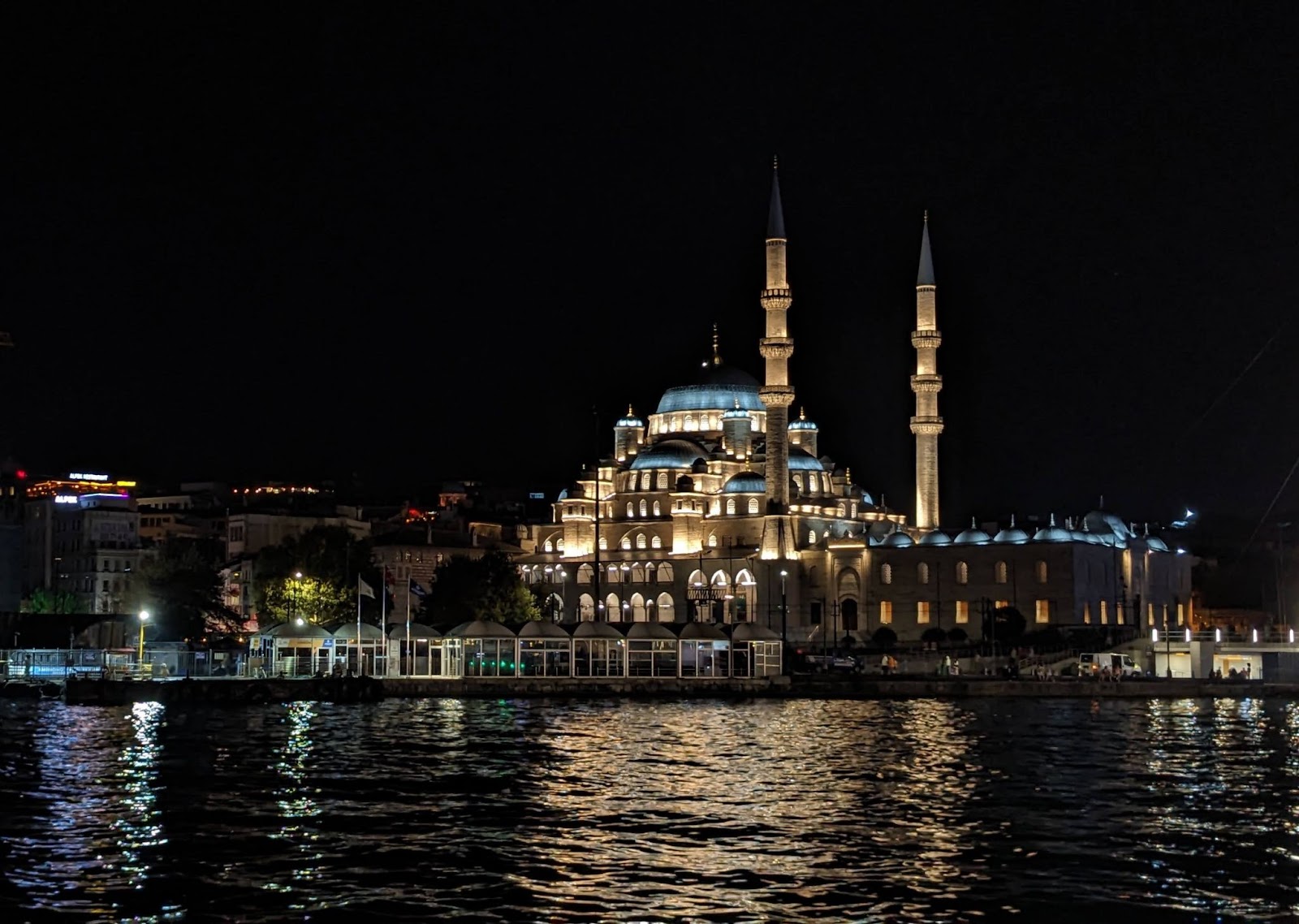 Как оказалось это самый населённый город Европы — 16 миллионов легальных жителей, а по сведениям местной разведки — все 20. Ну примерно как Москва. Добрались до исторического центра довольно поздно, было уже темно. Город встретил обилием, величием и красотой подсветок исламской архитектуры.