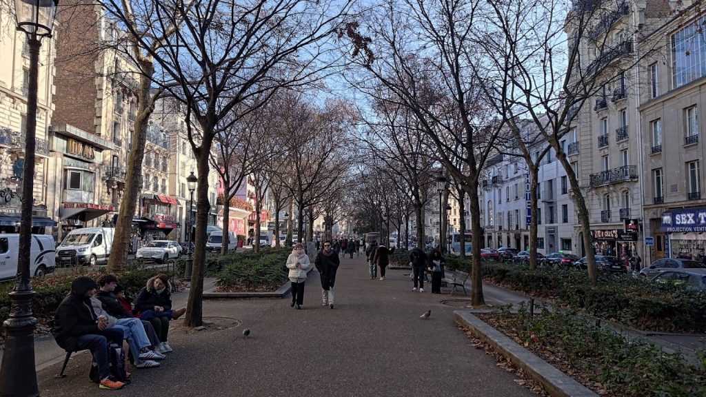 А если спуститься с холма и чуть отойти от Мельницы Красных Фонарей — тут просто город, аллейка, неторопливые прохожие, собаки, лавочки, магазинчики …