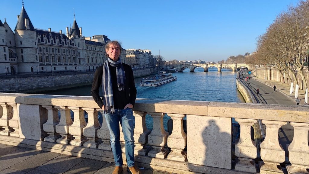 Да, холодно конечно. Но есть в этом морозном воздухе какая-то своя привлекательная свежесть. Снега нет, и не надо. Тихо течет река Сена. На ней неторопливые кораблики. По мосту прогуливаются праздные людишки, новый год, все-таки наступает. Солнце светит, и иногда даже греет …