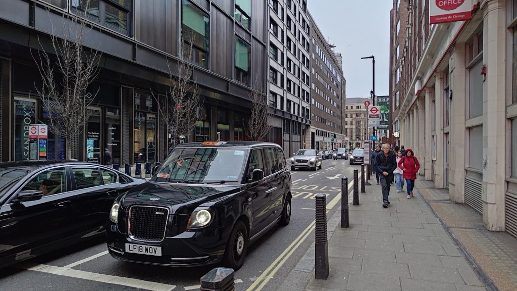 Первое, что бросается в глаза — все автомобили едут не на той стороне! Для пешеходов издалека на переходах есть надпись «смотри влево / вправо / или даже в обе стороны». Конечно же историческое лондонское черное такси: