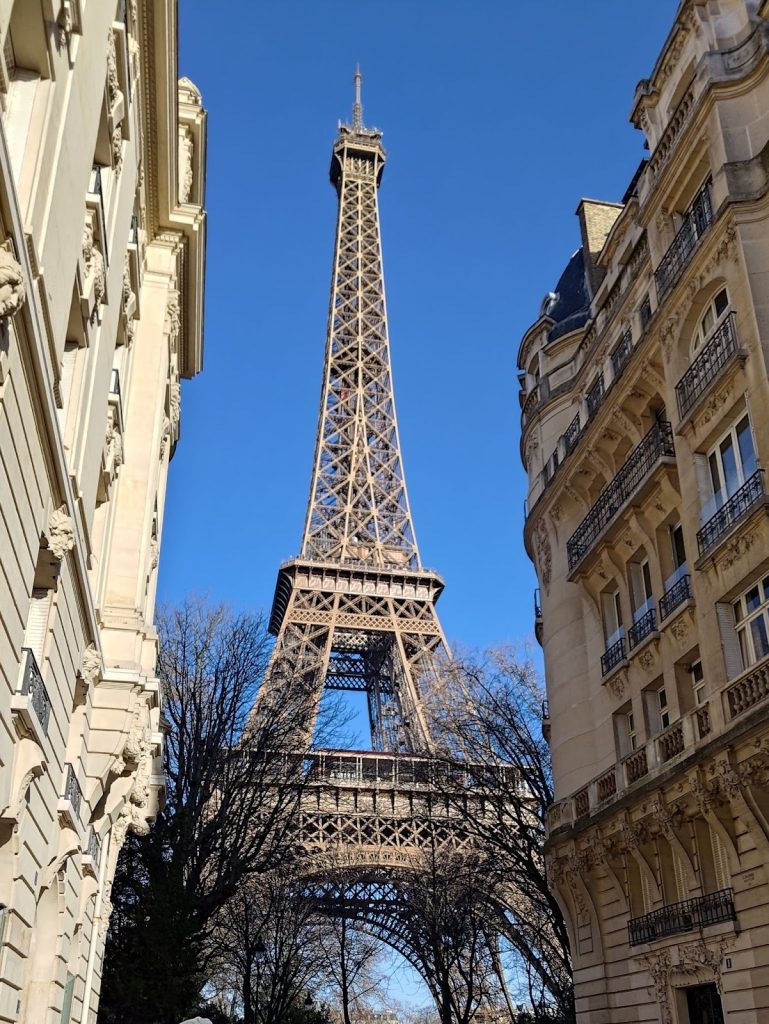 Только что были лондонские часы Биг Бен, и вот перед нами символ франции (один из, по крайней мере) Эйфелева Башня. Видно ее издалека. С ее вершины в разные стороны расходятся лучи прожекторов. Попасть на ее вершину не получилось по причине спонтанности происходящего — билеты надо покупать заранее. Зато тут в местных лавках продают горячее вино — почти глинтвейн, но поскольку слово это немецкое, его предпочитают не произносить лишний раз.